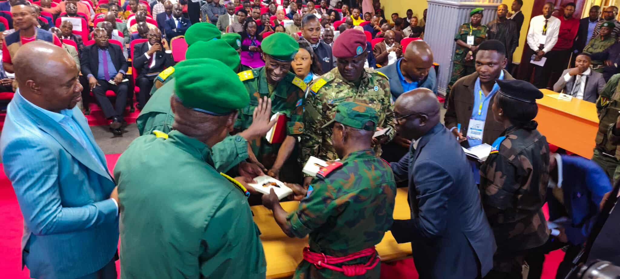 | Le livre a été présenté au public par le professeur ordinaire Gilbert Kishiba Fitula, recteur de l'Université de Lubumbashi et Président de la Conférence de l'ESURSI Haut-Katanga. Signalons que cette riche cérémonie a connu la participation du Président de l'Assemblée provinciale du Haut-Katanga, de généraux d'armées, de Recteurs et directeurs généraux, de hauts officiers supérieurs et bien d'autres invités de marque. C'est une atmosphère philosophique, couplée à une rhétorique scientifique, qui a suscité un appétit philosophique. |